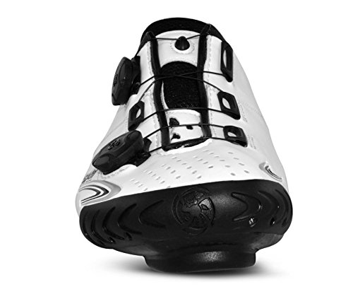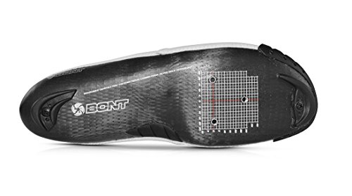 Next Generation Pro-Level-Rennschuh mit 100% Carbon-Monocoque-Konstruktion, mit Bonts firmeneigenem, wärmeformbarem Chassis, handgeführten unidirektionalen Carbon-, Duroliteoberflächen und Dual Dial-Befestigungssystem.