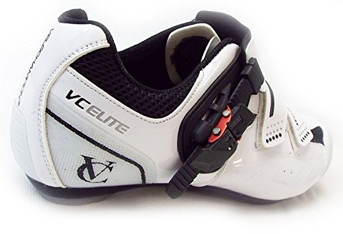 Aus den qualitativ hochwertigsten verfugbaren Komponenten hergestellt, bietet der VC Elite Rennradschuh eine klassische Passform aber mit moderner hoher Leistung fur lange Tage im Sattel. Die Schuhe werden aus dem qualitativ hochwertigsten PU-Material, einem weichen aber hochfesten Material hergestellt, das speziell fur unsere Schuhe entwickelt wurde. Das Obermaterial ist super leicht und geschmeidig, aber mit hervorragender Zugfestigkeit. Dank der glanzenden Ausfuhrung wird Wasser und Schmutz abgewiesen, wodurch die Schuhe ganz einfach gereinigt werden kšnnen. In Kombination mit Netzgewebe-Einsatzen und strategisch perforierten Bereichen bleiben Ihre Fu§e unter hei§en Bedingungen kuhl. Um Ihre Fu§e weiter kuhl zu halten, haben wir …ffnungen in die Au§ensohle eingearbeitet und ein ãwaffelfšrmigesÒ Fu§bett entwickelt, das Ihre Fu§e nicht nur kuhl halt, sondern auch ein geopolstertes Fu§bett schafft. Der Hauptratschenverschluss mit Feineinstellung ermšglicht eine perfekte Passform, wahrend die 2 unteren Klettverschlusse das Gewicht auf einem Minimum halten. Die Verbundpolymer-Au§ensohle umfasst eine Fassung fur eine 3-Schrauben-Anordnung und SPD-Schuhplatten, was sich sehr gut fur ãSpinningÒ-Training im Innenbereich eignet. Alle VC Schuhe werden mit einem hochwertigen VC Schuhbeutel in einer schšnen Schachtel geliefert. Eigenschaften:- Verbundpolymer-Au§ensohle mit 3-Schrauben-Schuhplatte (Shimano/Look) und SPD-Aufsatz. – Obermaterial aus speziell entwickeltem PU-Material. – Verstarkte Fersen- und Zehenkappe. – Schnallenriemen zur Feineinstellung. – Gewicht: 300 g pro Schuh. – ãwaffelfšrmigesÒ Fu§bett. – Inkl. VC Schuhbeutel.